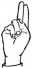 На ћирилици написано ЛАБУДА ЦИМИРОТИЋ састоји се из 15 слова [?]. Исписано ћириличном једноручном азбуком за глувонеме: